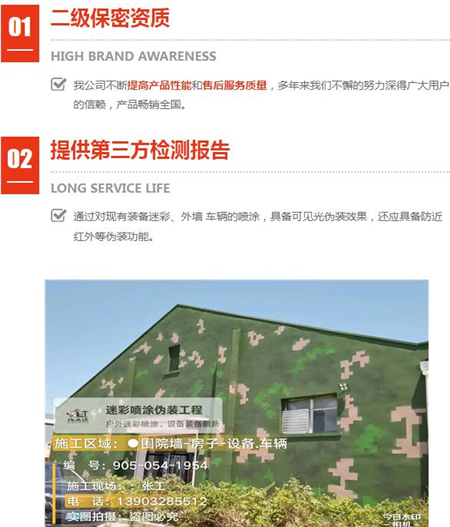 迷彩偽裝涂料漆、環(huán)保建材等領(lǐng)域,但外墻迷彩漆是一種特殊的涂料,主要用于提供防護和迷彩效果,具有耐候性強新產(chǎn)流程全程監(jiān)控